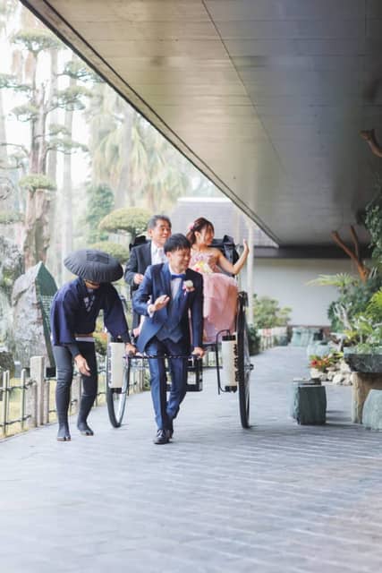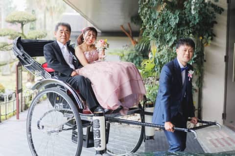 なんとお色直し入場は人力車でする事にしたおふたり!